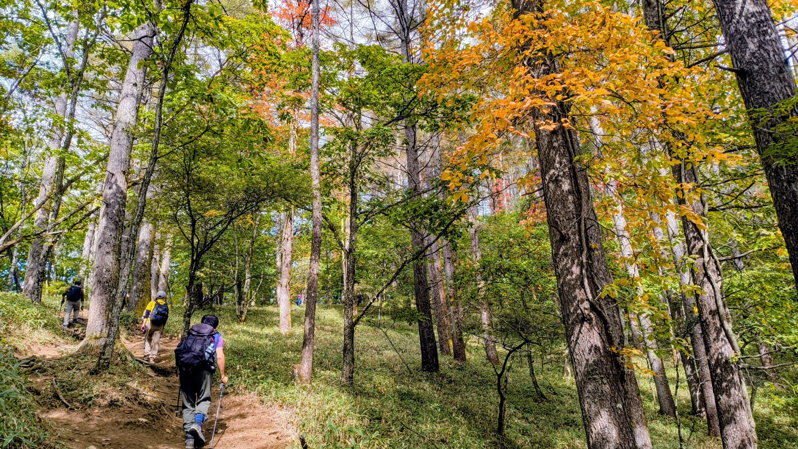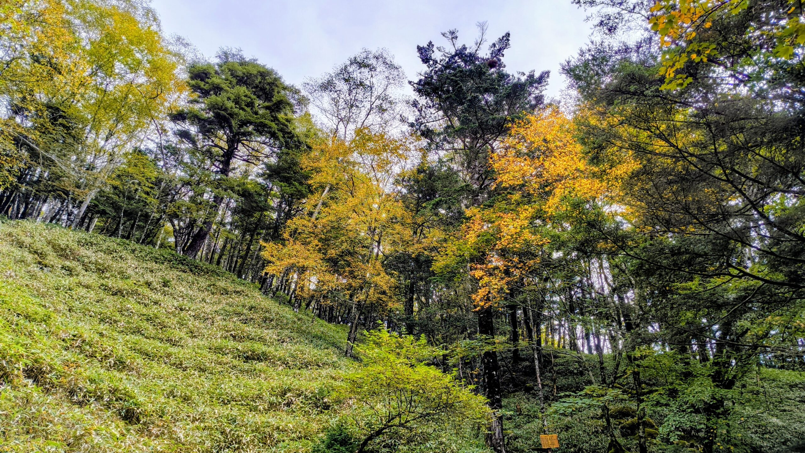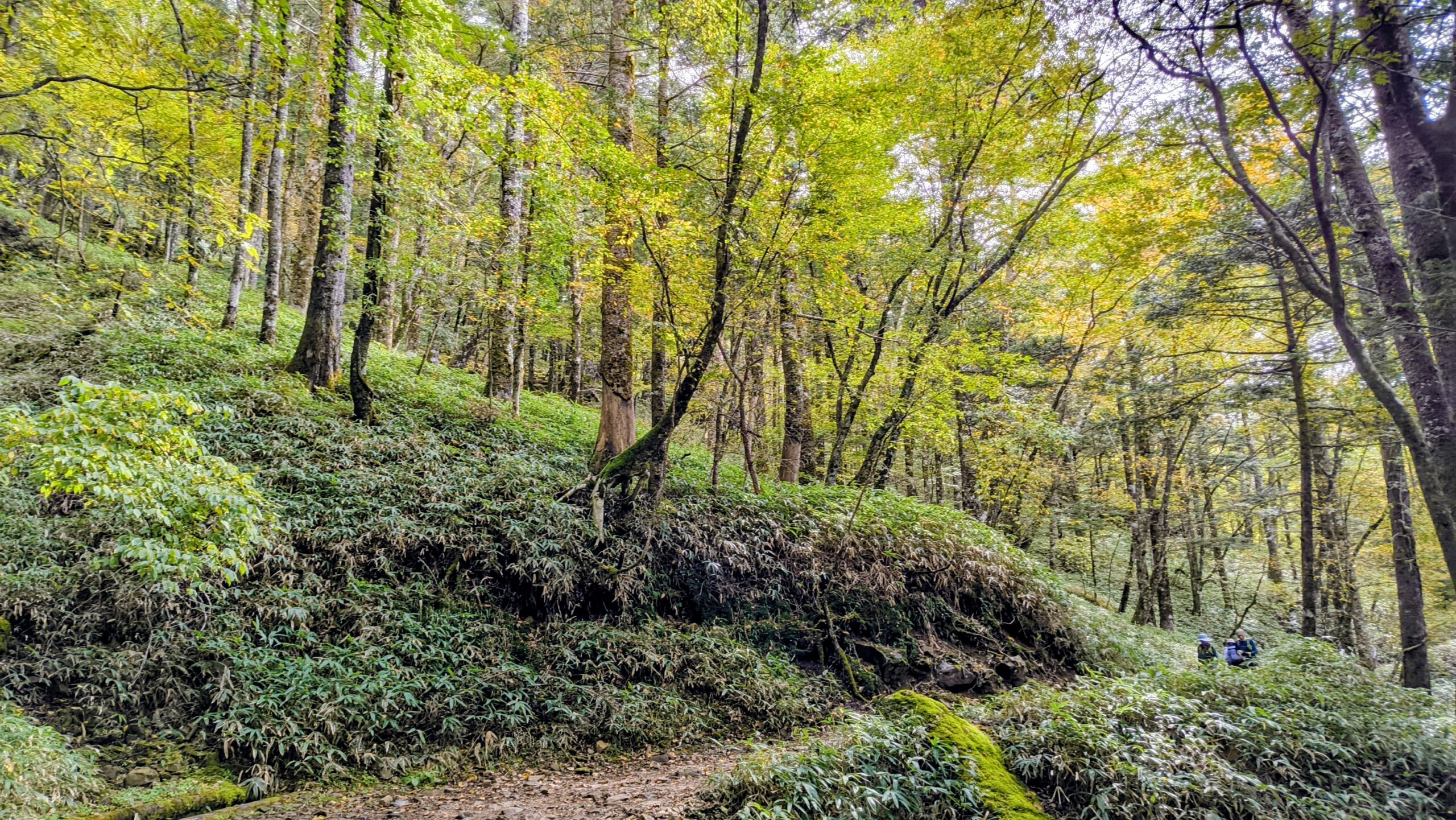 少しずつ黄色くなり始め、登りも急になり始めてきました。このあたりで、11時46分だったので、「福ちゃん荘」から約15分です。