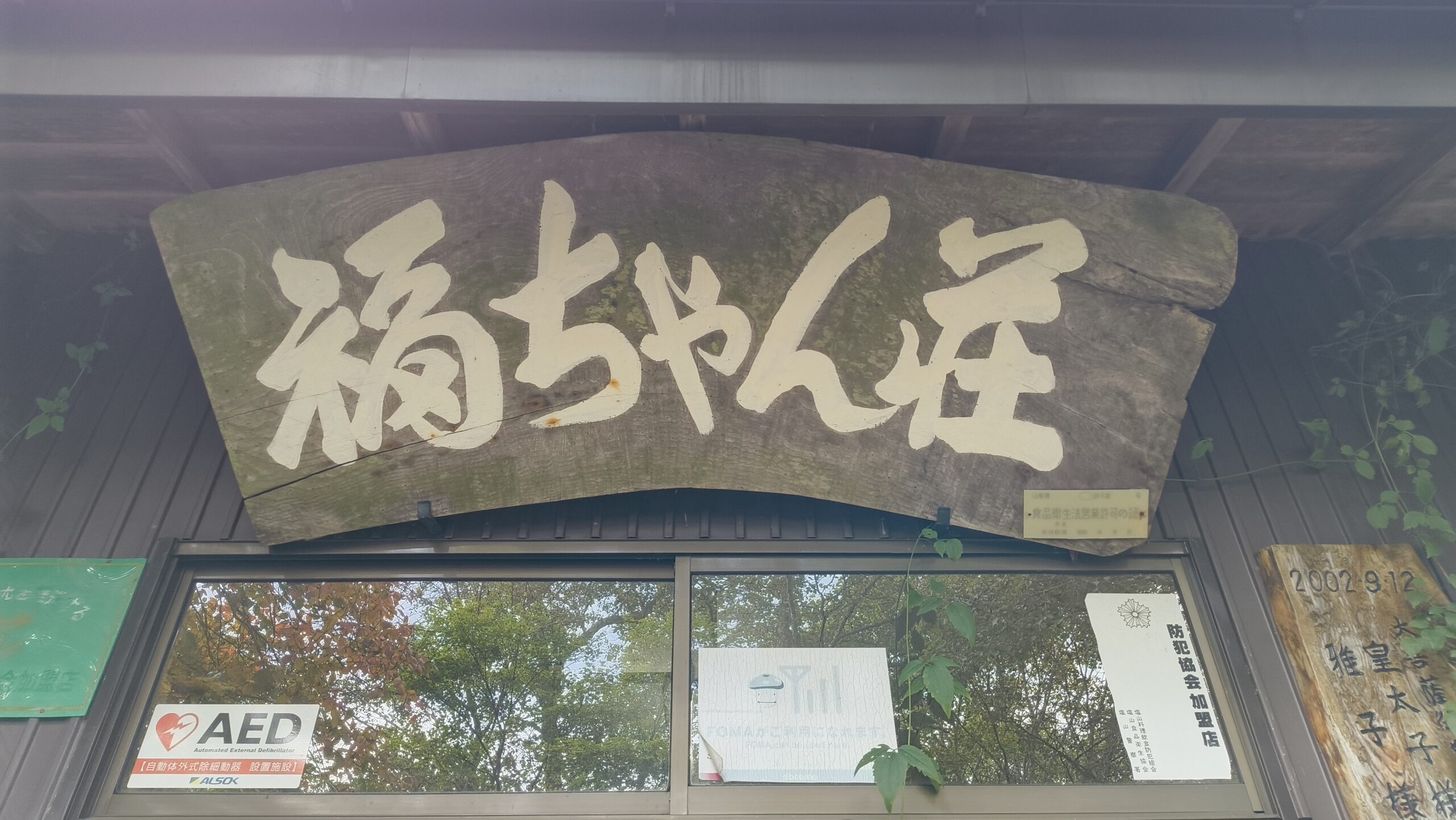 そんなこんなで、ロッジ長兵衛から15分ほどで、「福ちゃん荘」にたどり着きました!福ちゃん荘には、「皇太子様 雅子様 御休憩所 大菩薩御登山 2002年9月12日」と記載されている木の看板が飾ってあります。今から約23年前に、天皇皇后両陛下が御登山されていた歴史が感じられます。天候は良く、富士山も見れたそうです。