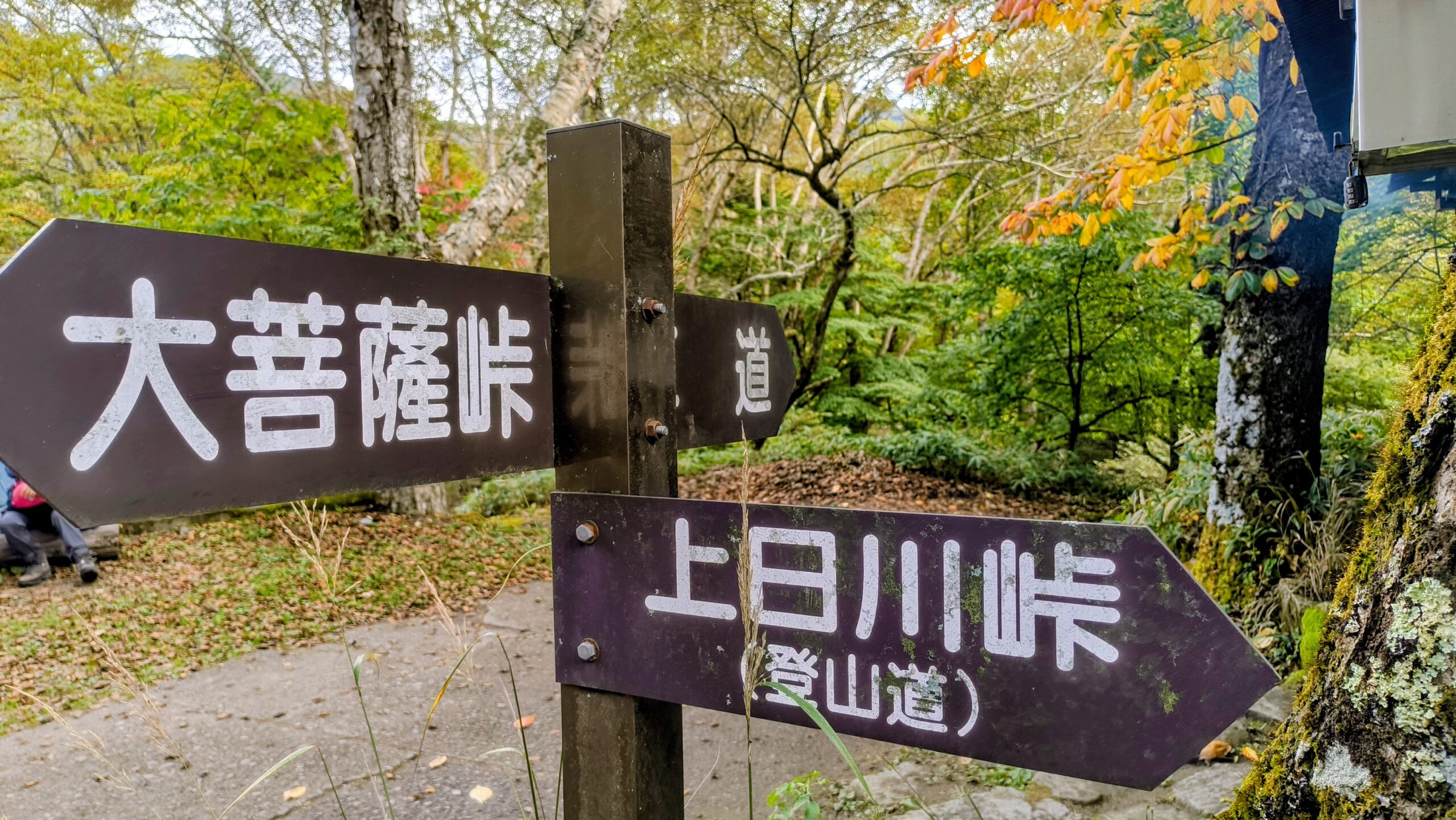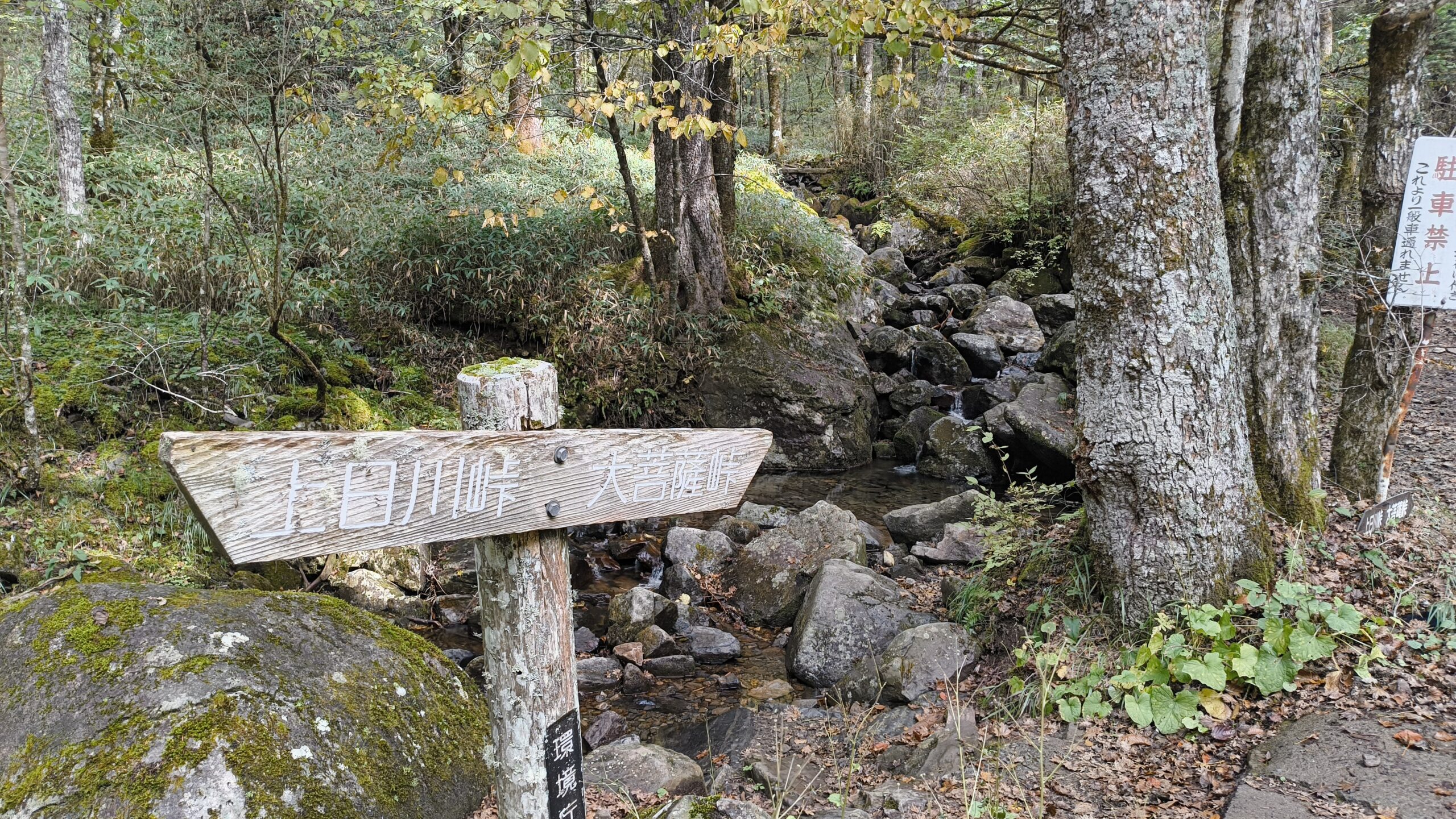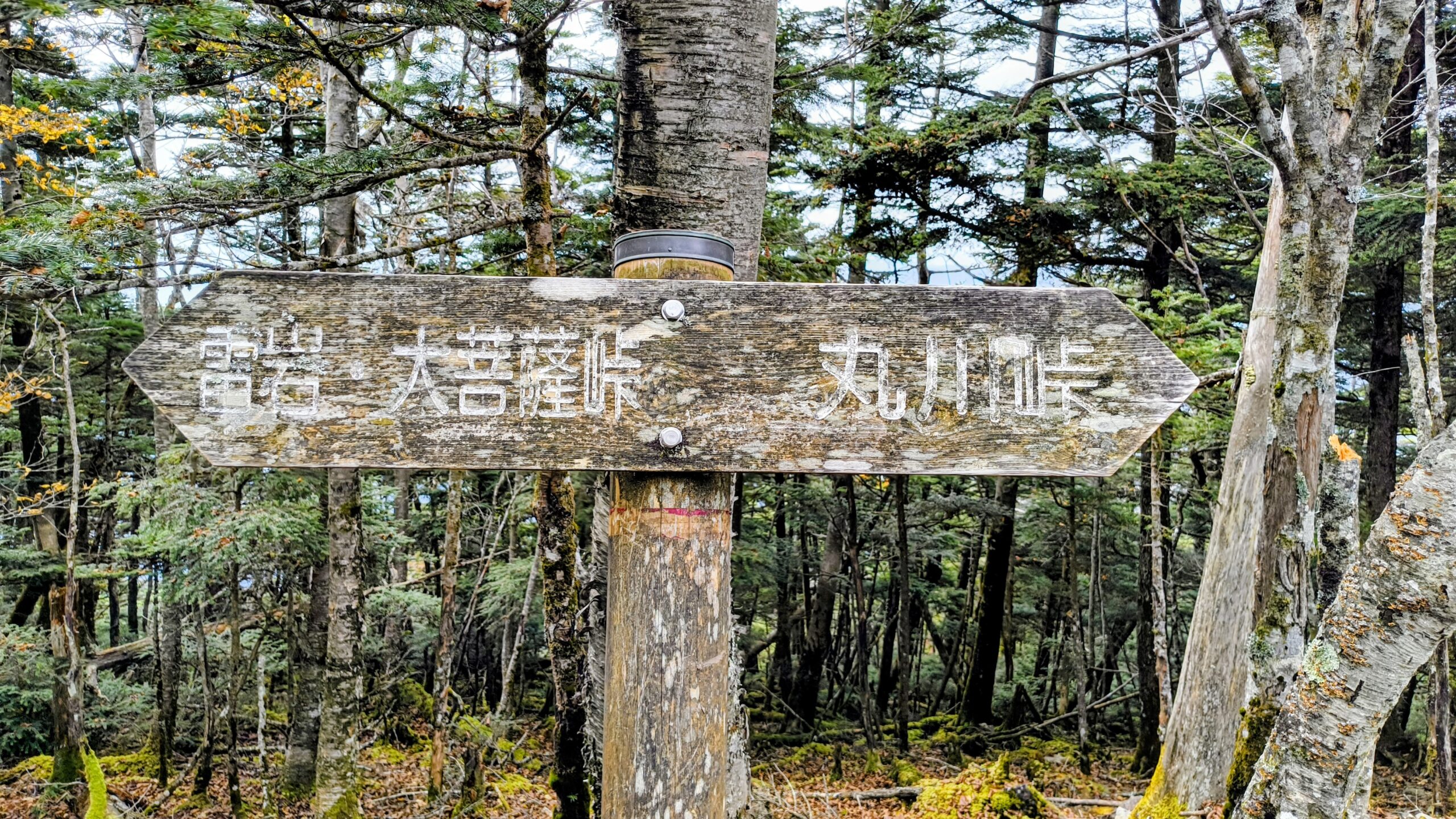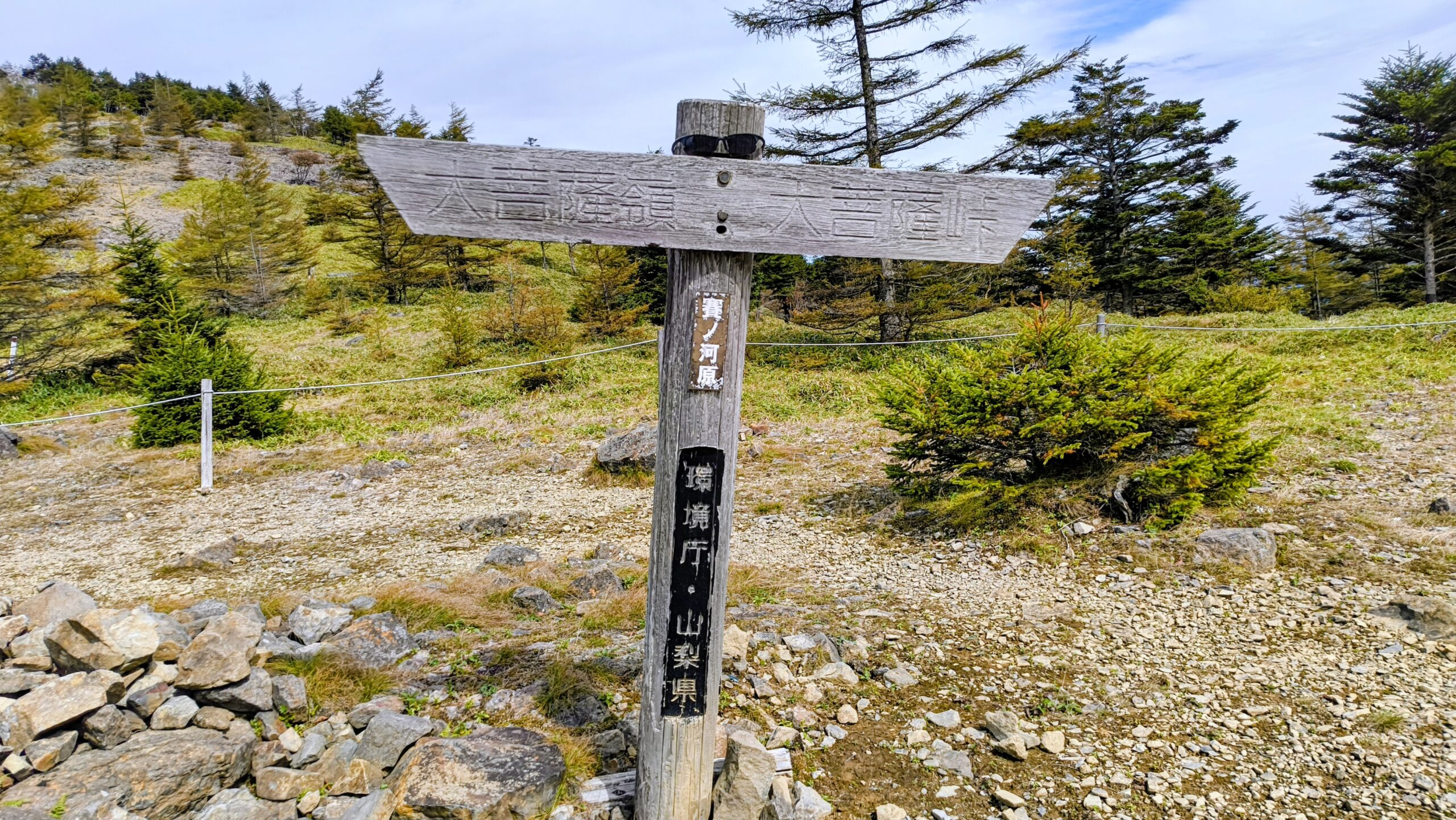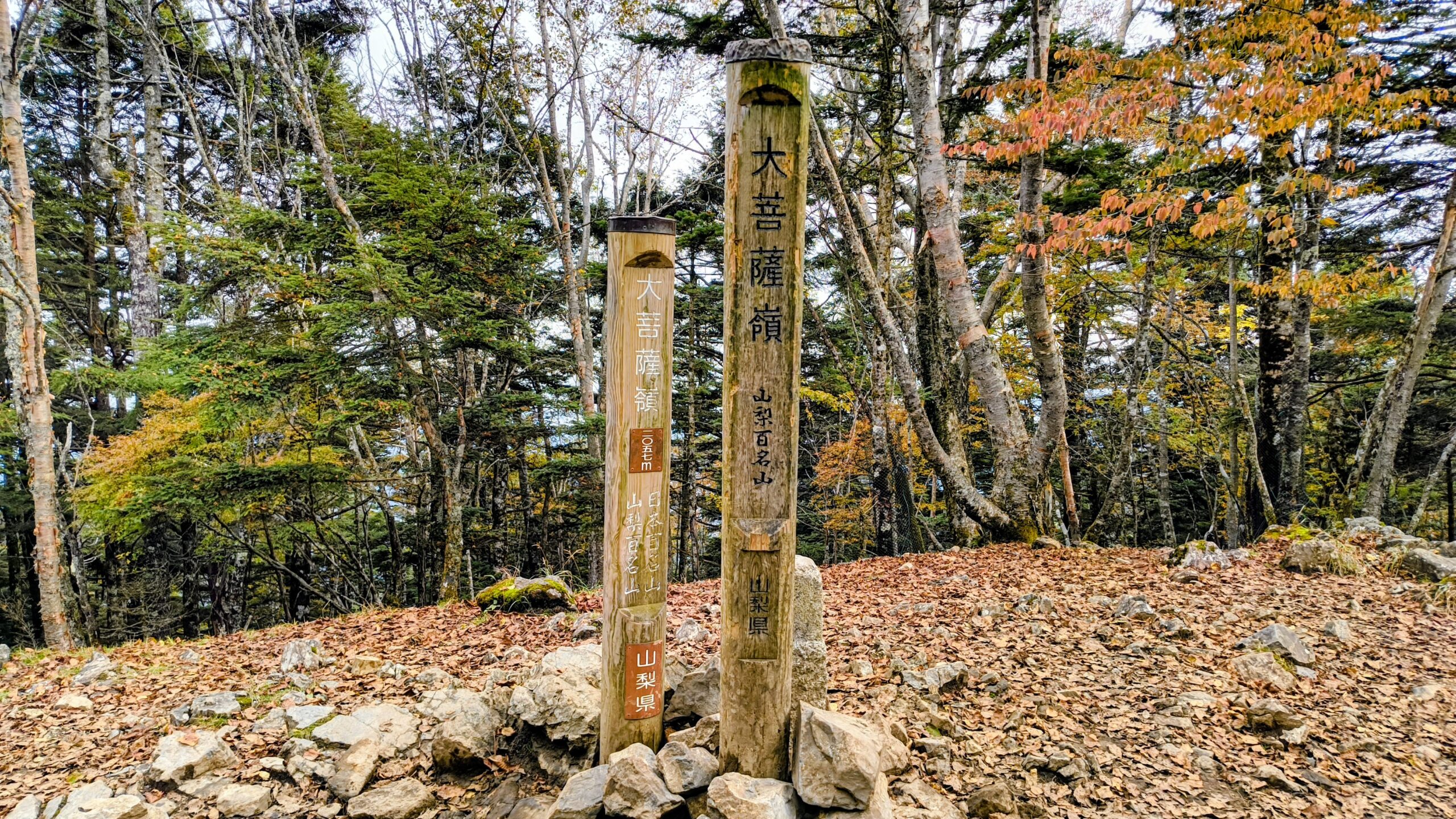 「大菩薩嶺」と「大菩薩峠」を指し示す看板です。こちらには「賽ノ河原」と書かれています。先程通過してきた「親不知ノ頭」もそうですが、子どももしくは親子関係に紐づく名前が多いですね。