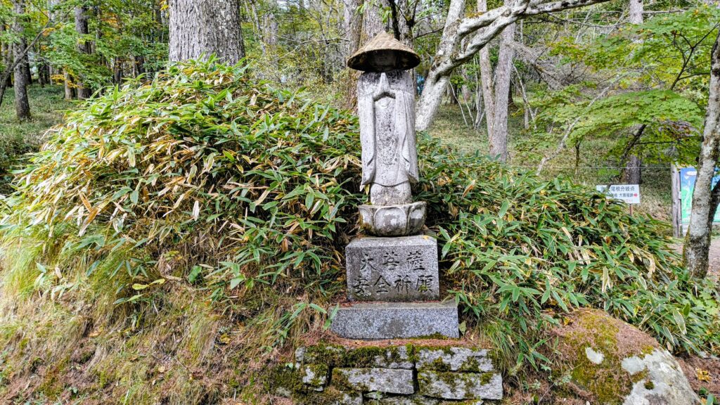 「大菩薩安全祈願」と掘られた笠を被ったお地蔵さまがいらっしゃいました。ここで何人もの登山者を見送っていただけていた歴史を感じます。