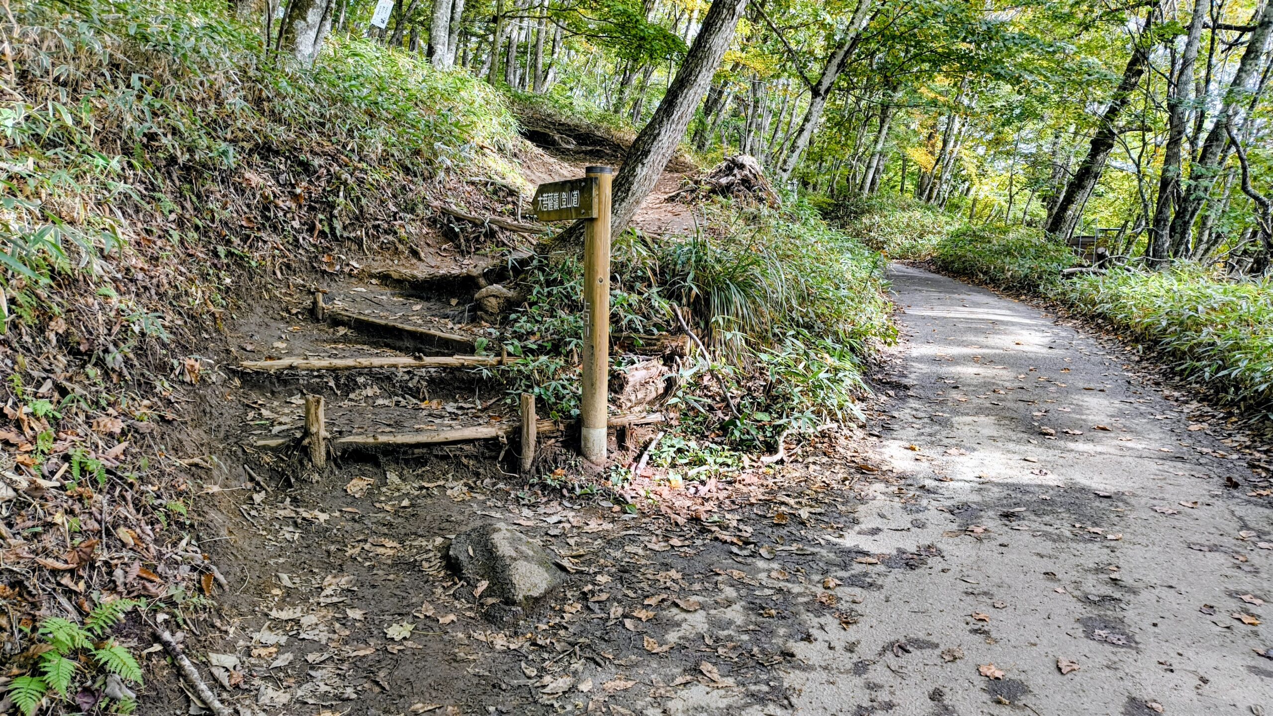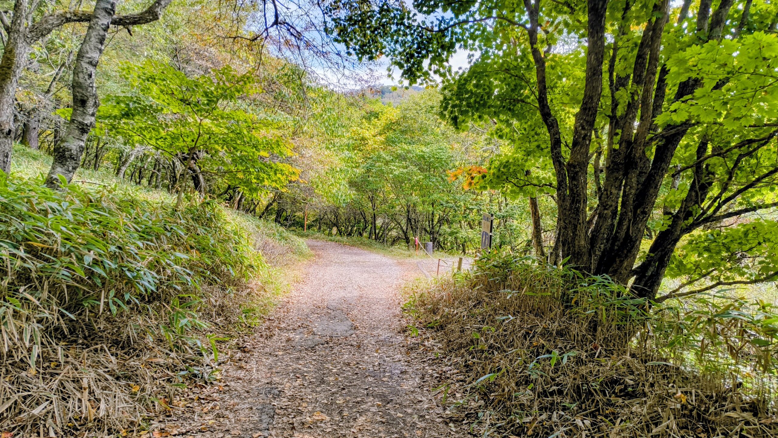 駐車場が有るだけあって、車が通れるほどの整地がされているので、かなり歩きやすいです。点在している紅葉を見ながら歩ける幸せを噛み締めます。良い季節ですね…!