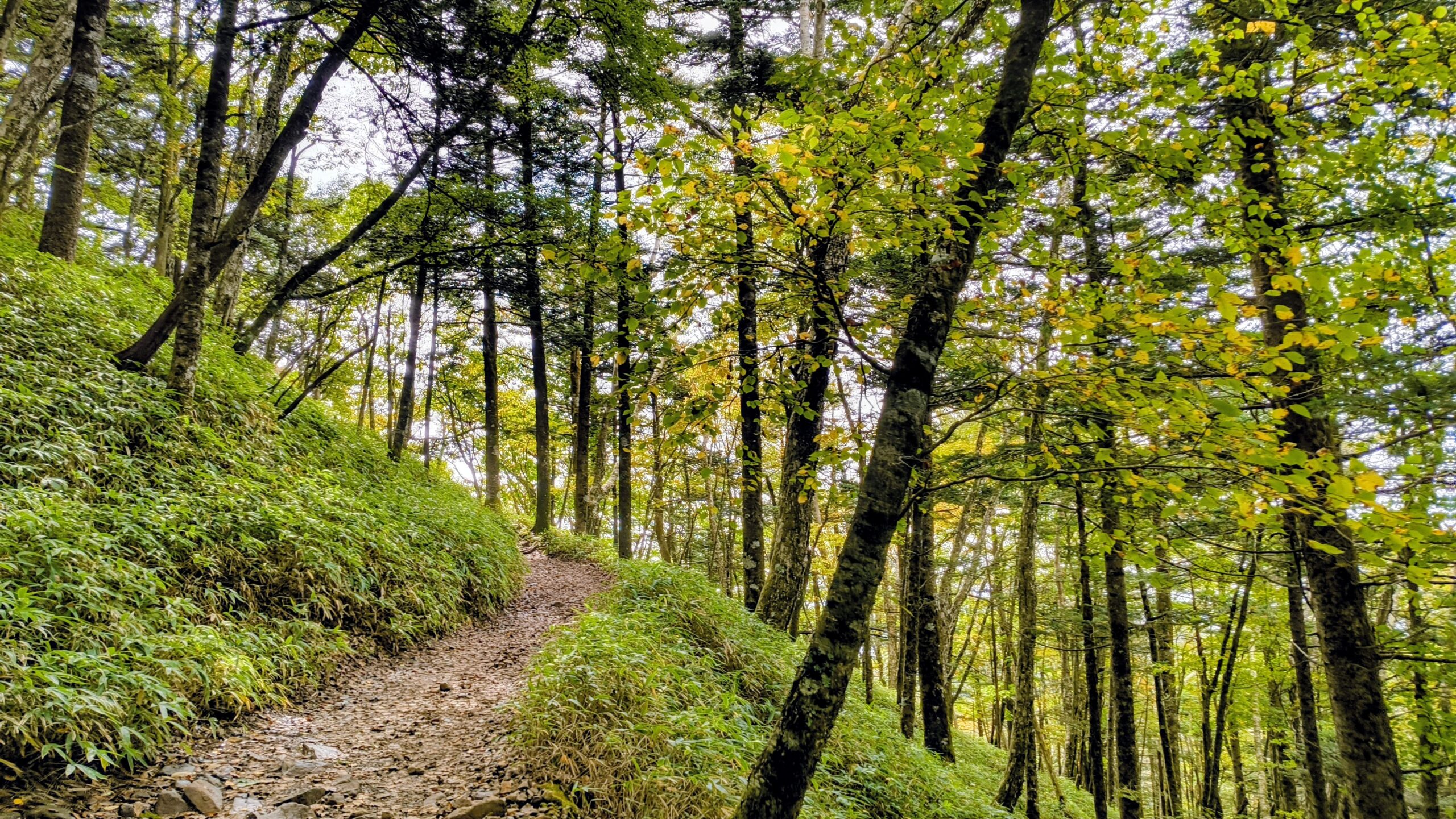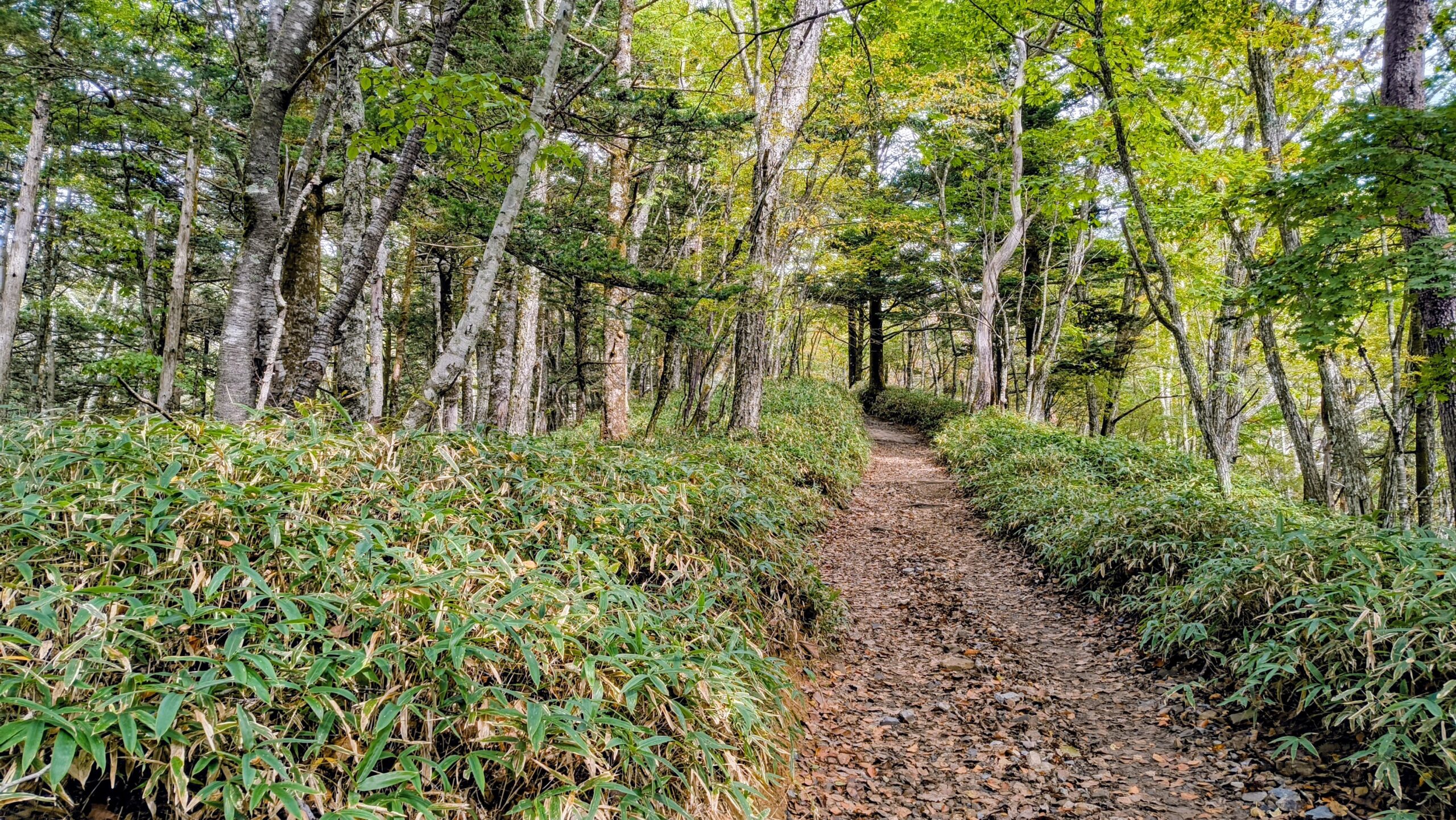 やはり、どの山の登山道にはササが生育しているものですね。