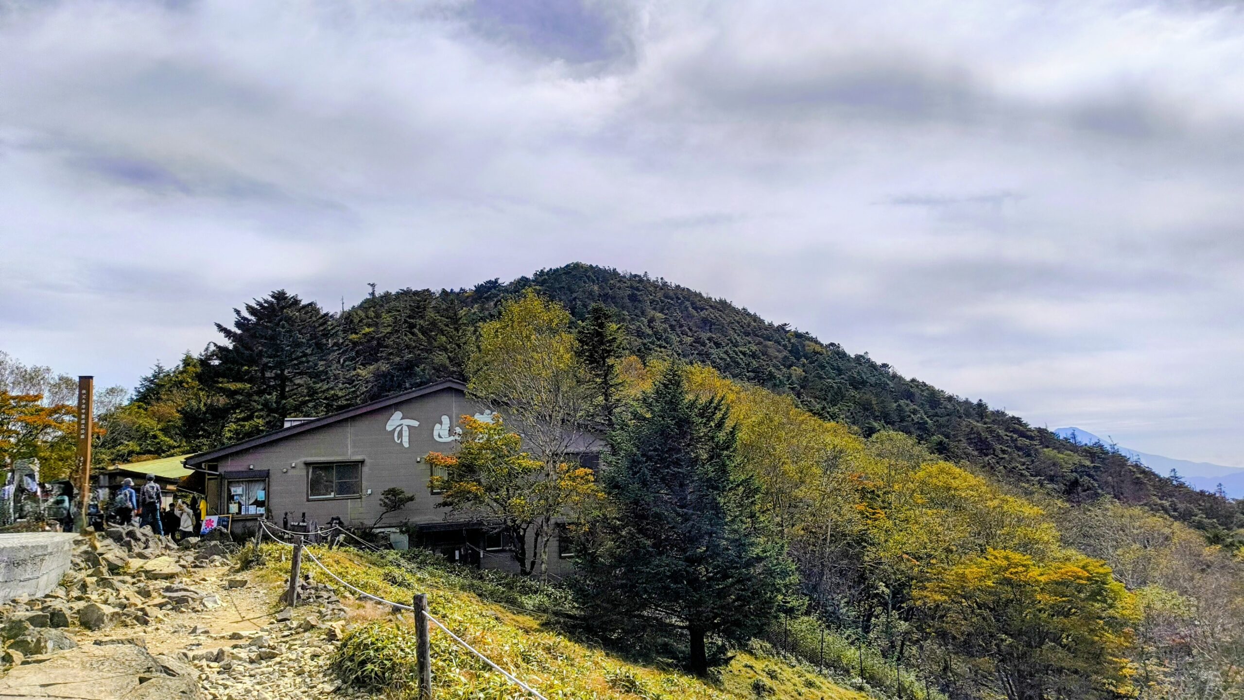 こちらは、振り返って見えた「介山荘」です。写真の左側を見ていただければわかるのですが、端でもこんなに混んでいます。やっぱり人気すごいですね。