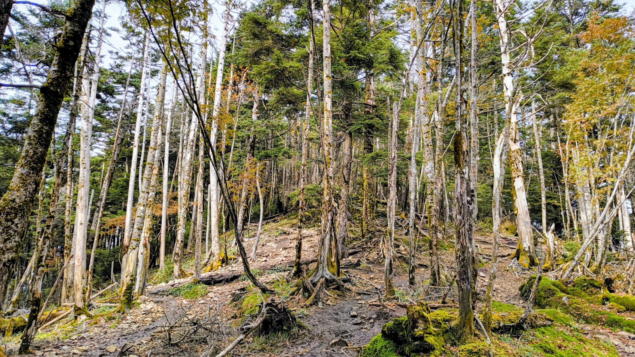 目線を上げると、結構背の高い樹木が多いことに気が付きます。すらっと上に伸びてて、巨木とは、また違った良さを感じます。