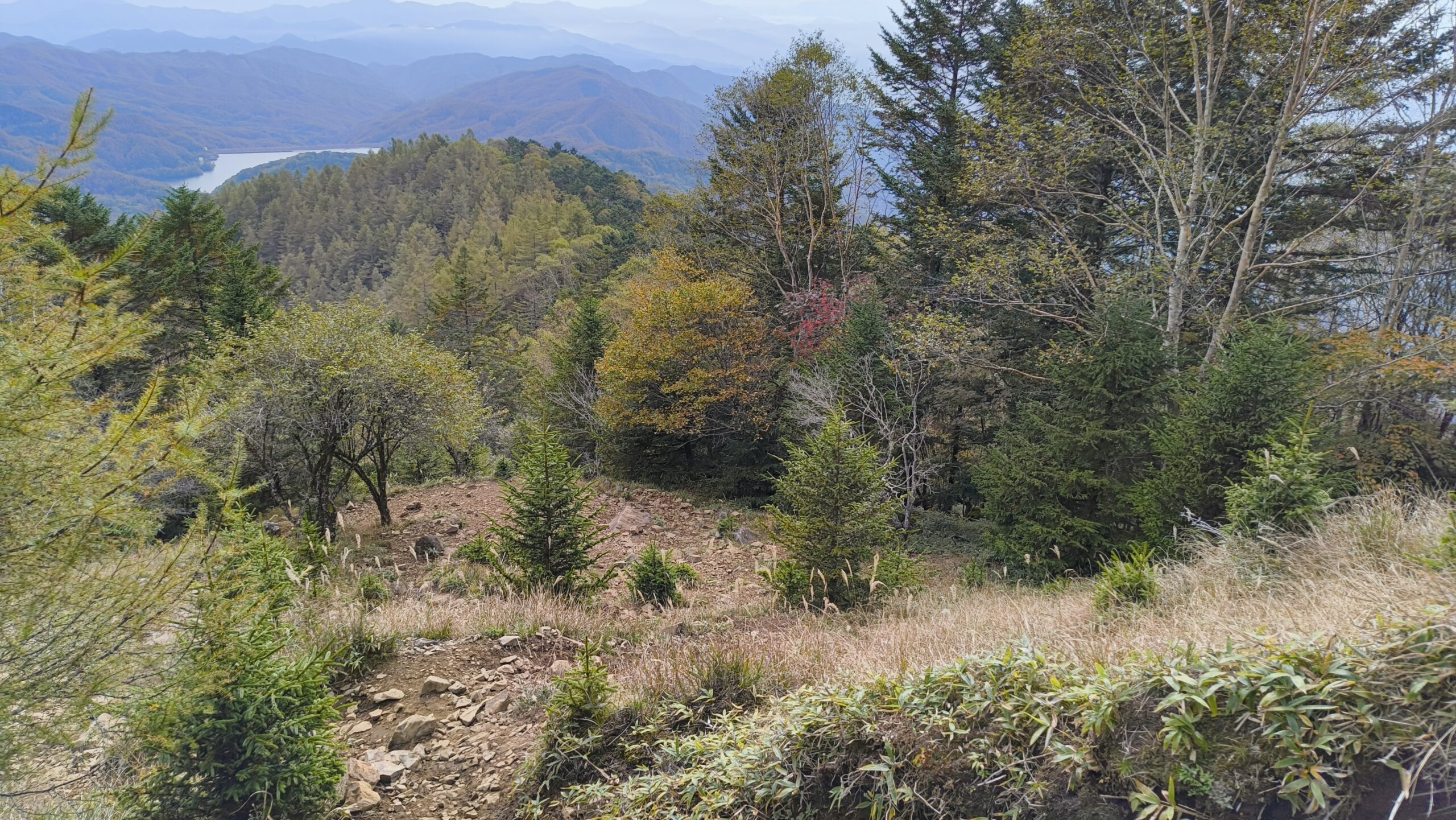 下山しながら景色を堪能するのは、体力的にはそんなに辛くはないですが、足を挫かないように注意が必要です。それにしても、ススキが良いアクセントになっています。